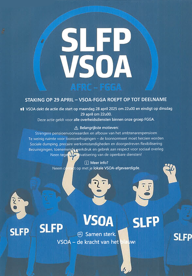 (11/04/25) - Door de onverzettelijkheid van de politiek, roept onze groep FGGA-VSOA op tot deelname aan de vakbondsactie van 29 april.